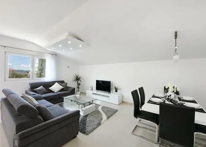 Apartment Monika - Private Terrace & Parking 扎达尔距离五井广场有3公里的路程,公共区有免费无限网络. 这套90平方米的公寓旁边就是超新星扎达尔购物中心;住宿设有2间卧室,绝对是不二之选.